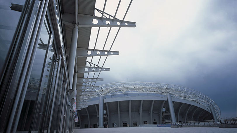 哈爾濱國際會展體育中心容量巨大、功能完善。具備建筑面積51000平方米的比賽用場地,面積為3525平方米的體育館,可容納1.1萬名觀眾,這里可進行冰球、籃球、排球、羽毛球、體操、手球等多種項目的比賽及大型文藝藝術演出。屋面使用了寶鋼熱鍍鋅氟碳彩涂板。